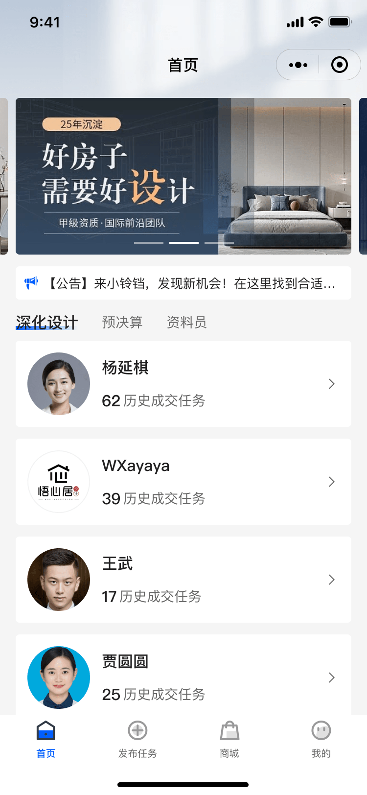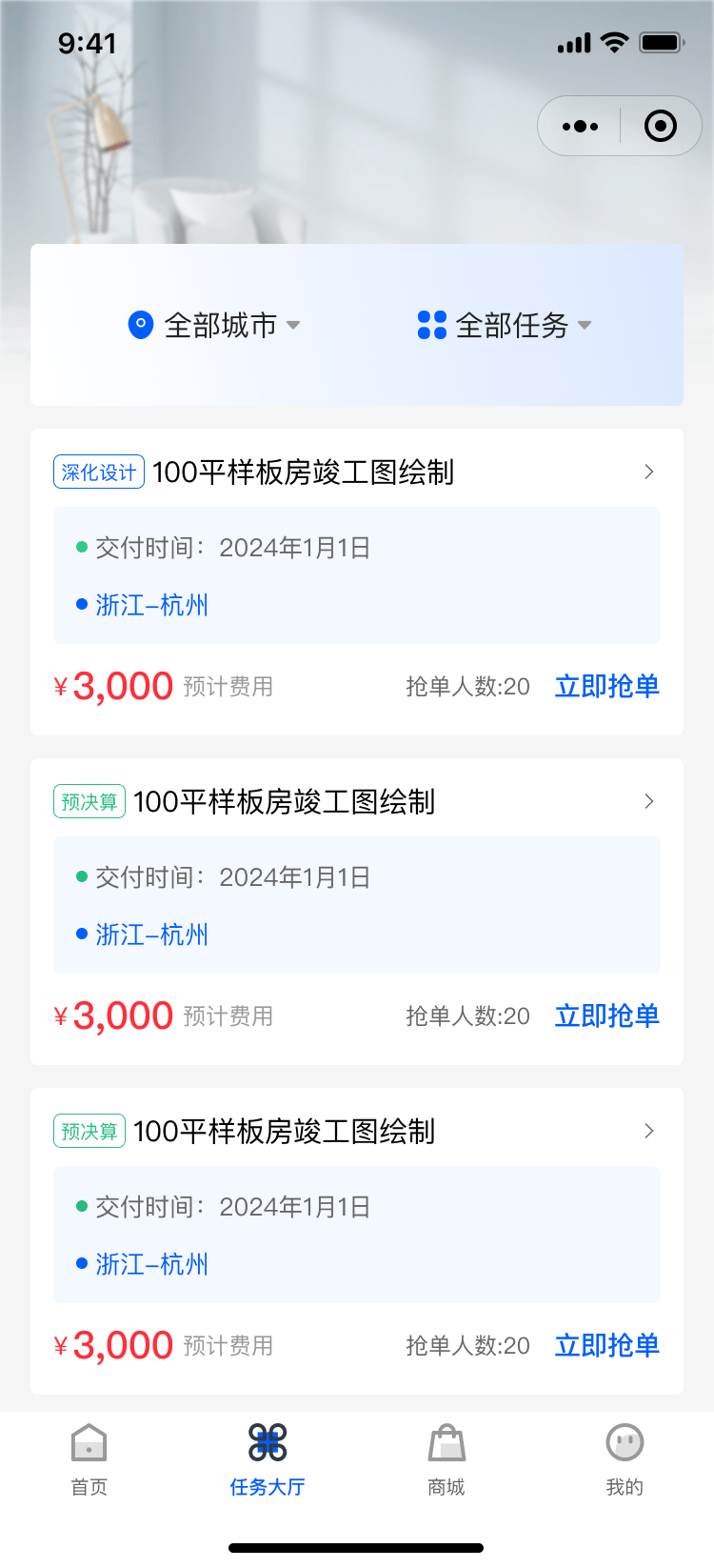 首页 > 公司案例 > 小程序开发 > 装修接单平台