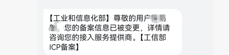 工信部审核结果出来之后,管理员的手机会有短信提示,比如:尊敬的用户***,您的备案信息已被变更,详情请咨询您的接入服务提供商。这就表示你的ICP备案已经成功了。反之,会有未通过的提示。通常未通过的原因,是域名的实名信息与企业的备案信息不一致,需要先更改域名的认证信息,保持与主体一致,再重新提交。