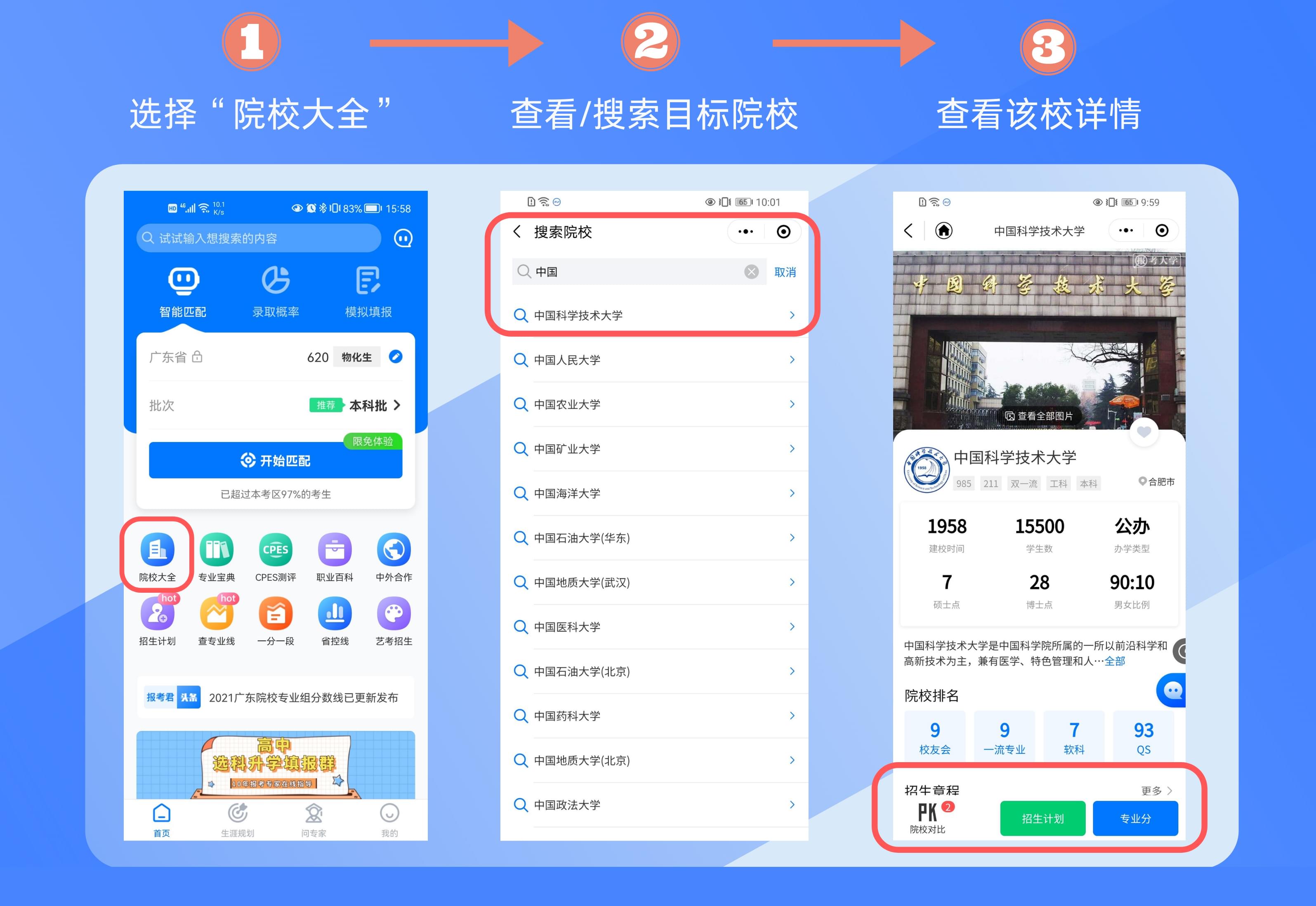 2. 学校专业查询:提供全国各高校的专业介绍和录取要求,帮助用户了解各个学校的特色和专业情况。