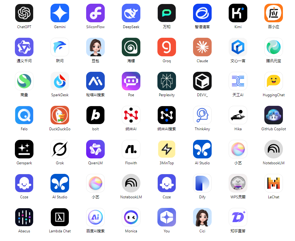 大家好,今天是2025年4月1日,星期二。之前我介绍了我们公司给甲方定制开发的上百款软件,其中不乏很多内部使用的AI使用。昨天有朋友问我,现在市面上有哪些好用的AI软件呢?因为他的手机里面就只有一个Deepseek,叫我再给他推荐两款。今天我分享目前我们接触过的55款AI软件,分享给大家。关于哪款AI软件好用的问题,在这里我们不做点评。当然,你可以小窗我们,我们分享给你我们公司使用较多的AI软件。